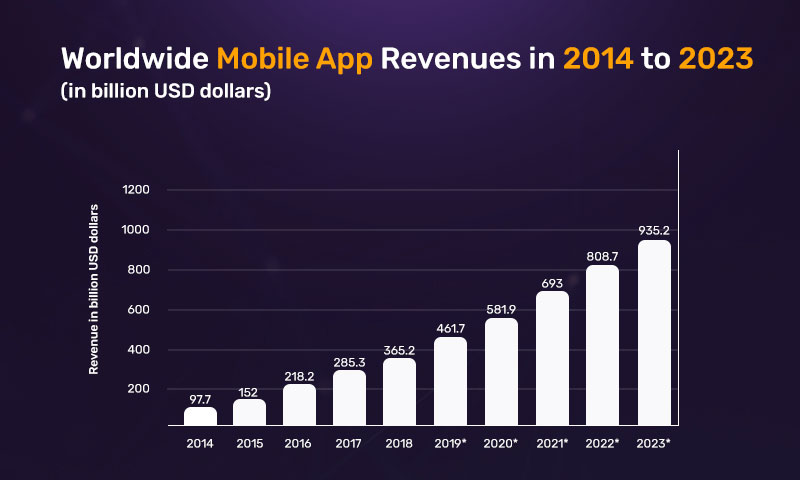The mobile app development market is becoming more lucrative every day. A business plan for an app startup is necessary for success. Revenues generated from mobile apps have reached 693 billion in 2021, and are projected to reach around 935.2 billion by 2023. In just two years, the revenue will increase by more than 300 billion.